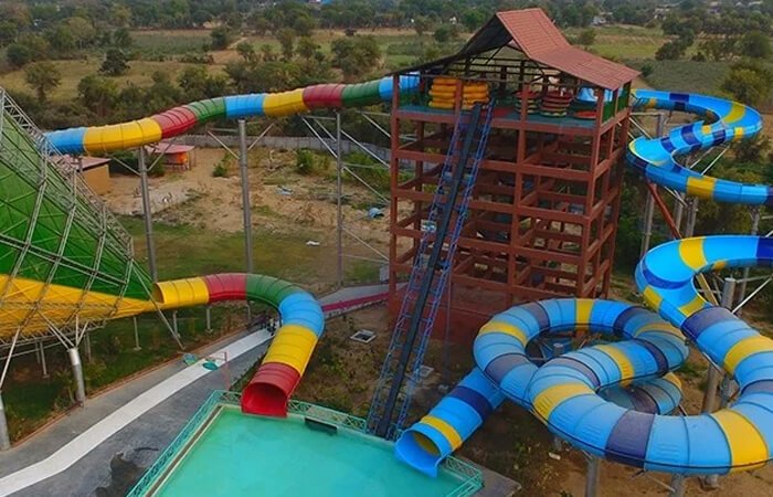The Swoosh Bluster Ride is a thrilling four-seater attraction shaped like a cone. Riders enter through a tunnel, experiencing a full oscillation before emerging through a funnel and splashing into a pool. It offers an exhilarating journey from start to finish.